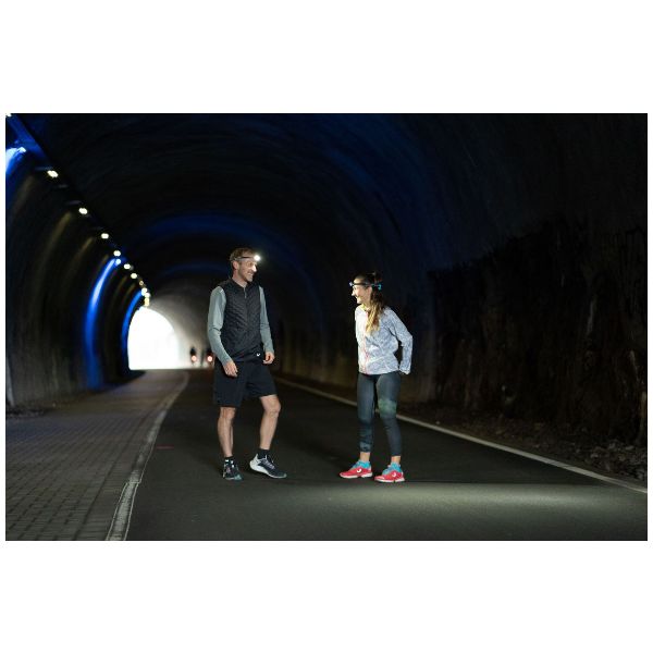 Die NEO5R ist dank ihrer starken Lichtleistung und dem maßgeschneiderten, speziell entwickelten Lichtbild (Ausleuchtung des Nah- und Fernbereichs) die optimale Stirnlampe für NachtläuferInnen. Die Gewichtsverteilung sorgt für besten Tragekomfort, auch über einen längeren Zeitraum. Eigenschaften wie das reflektierende Stirnband und das rot blinkende Rücklicht sorgen für zusätzliche Sicherheit im Dunkeln. Der integrierte Li-Ion-Akku wird per Magnetkontakt geladen. Um zum Beispiel in Laufgruppen niemanden zu blenden, bietet der mitgelieferte Brustgurt eine weitere Befestigungsoption. Der Lampenkopf lässt sich zur individuellen Justierung des Lichtkegels um 45° schwenken. Schnelles und einfaches Aufladen des leistungsstarken Akkus per Magnetic Charge System mit Status-LED. Transportsicherung gegen unbeabsichtigtes Einschalten. Breite des Lampenkopfes: 4,1 cm. Lichtleistung: max. 600 lm für bis zu 100 m Leuchtweite. 4 Lichtmodi. Laufzeit: bis zu 35 Stunden. Akku: Li-Ion-Akku mit 1800 mAh. Ladezeit: 240 min. Lieferumfang: Leuchte, Akku, Magnetladekabel (USB-C), Comfort Pad (Schutzkissen für hohen Tragekomfort), Brustgurt. Gewicht der Leuchte mit Akku: 104 g. Schutzklasse IP54.