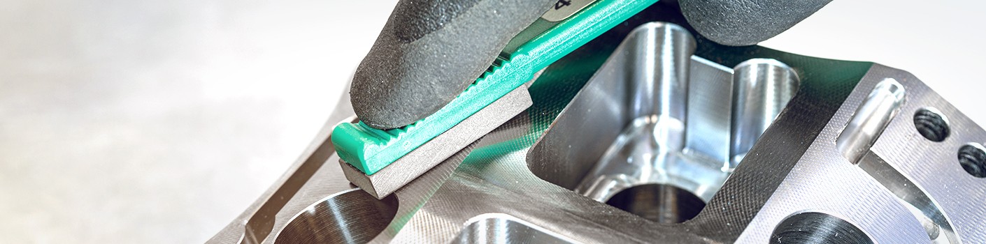 What makes finish machining metals or polymers in industrial environments stand out is that you can achieve dimensional accuracy and precision using machines but also by hand with hones, hand lappers or bench stones. For finish contouring, you can use abrasive sanding sponge or non-woven sanding sheets. This finish grinding medium, usually available in rolls or by the sheet, is really flexible, adopting the component surface’s shape as well as your hand’s when you use it. If you’re looking to apply slightly greater pressure, use a sanding block for good results.