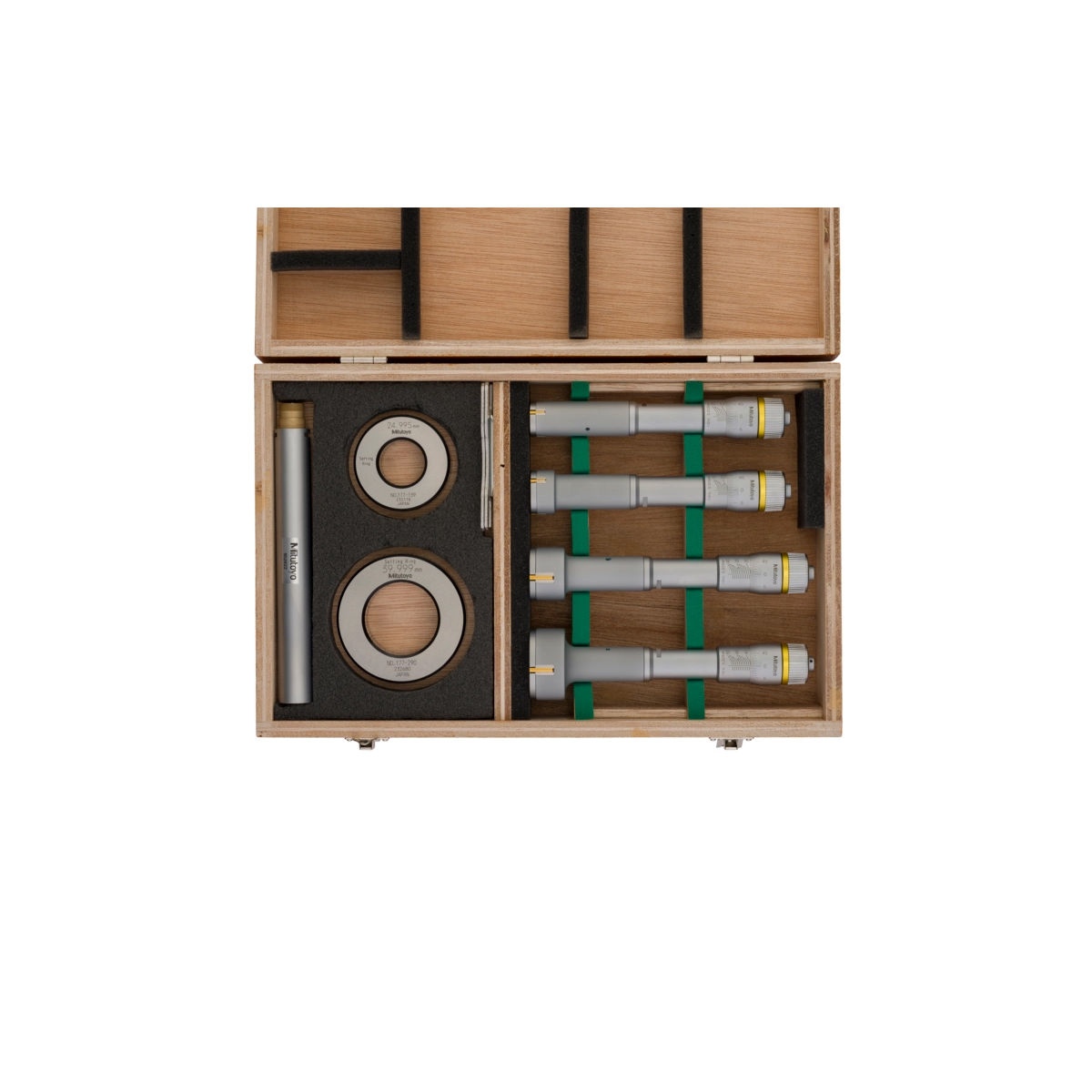 This is a set of three-point and two-point internal micrometers that offers you the following benefits: Complete unit set. Carbide measuring surface (2-6 mm range). Titanium-coated measuring pins (> 6 mm range) give you excellent durability and impact resistance. Delivered with setting rings